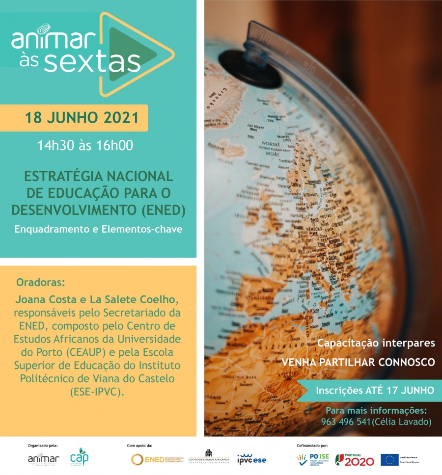 O próximo Animar às Sextas terá como foco a Estratégia Nacional de Educação para o Desenvolvimento (ENED) 2018-2022.