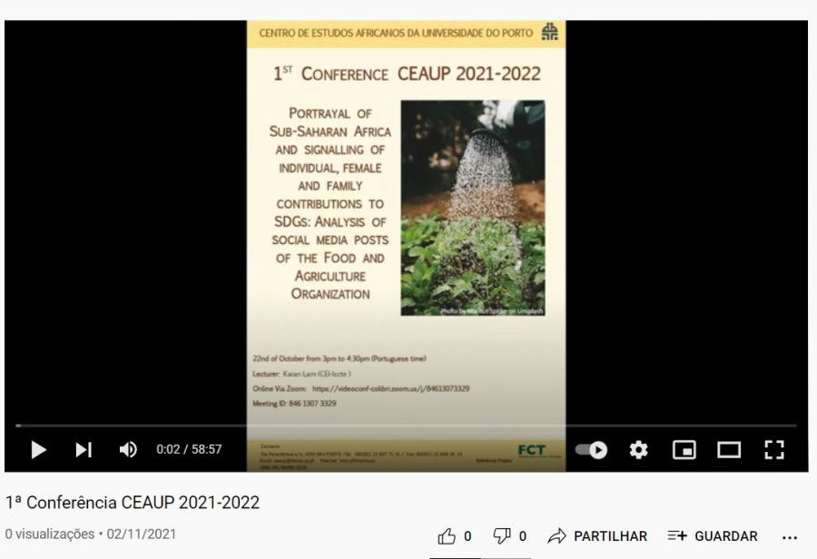 1ª Conferência CEAUP 2021-2022: Portrayal of Sub-Saharan Africa and Signalling of Individual, Female and Family Contributions to SDGS: Analysis of Social Media Posts of the Food and Agriculture Organization