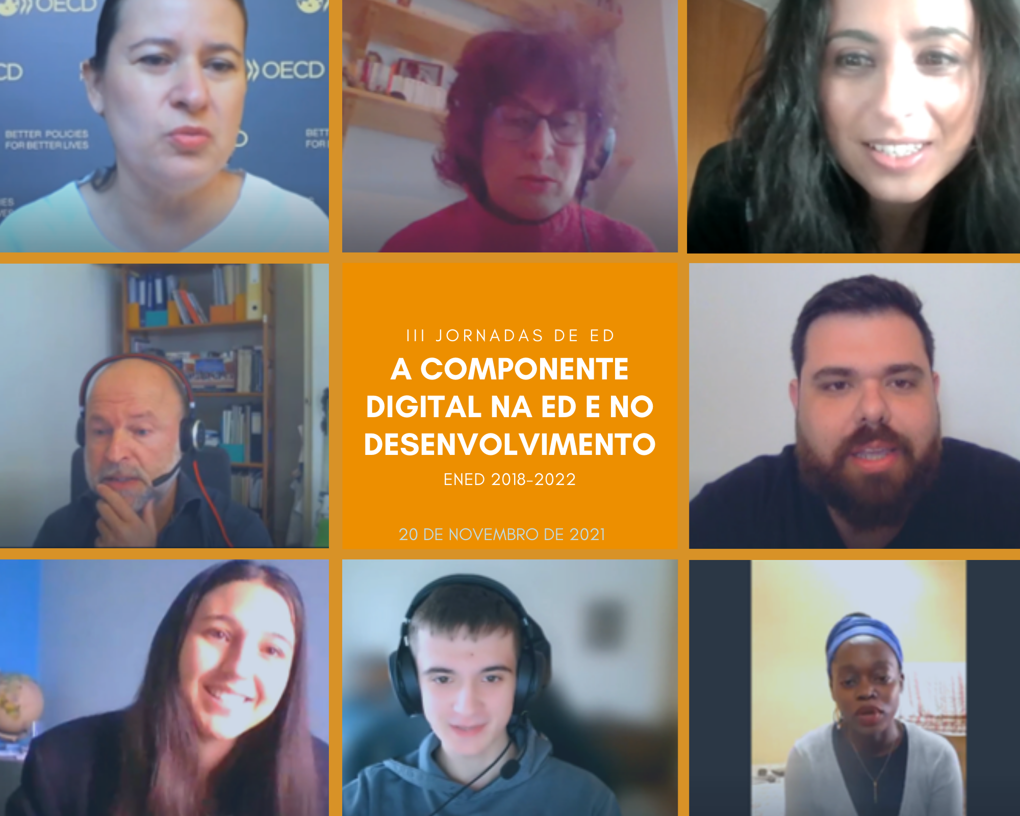 A primeira sessão, com a temática A componente digital na Educação para o Desenvolvimento(ED) e no Desenvolvimento, decorreu em formato online, no dia 20 de novembro, entre as 10h e as 13h, e foi aberta à participação de todas as pessoas interessadas, contando com cerca de 200 pessoas participantes.