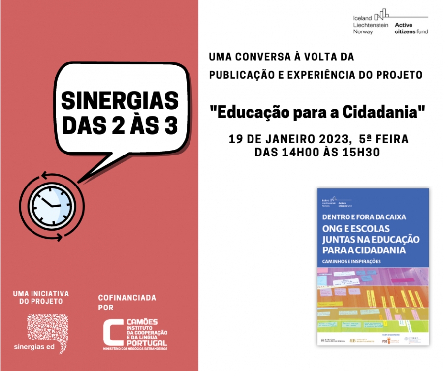 A conversa acontece no dia 19 de janeiro 2023, entre as 14h e as 15h30, e andará à volta da publicação "Educação para a Cidadania" e da experiência deste Projeto.