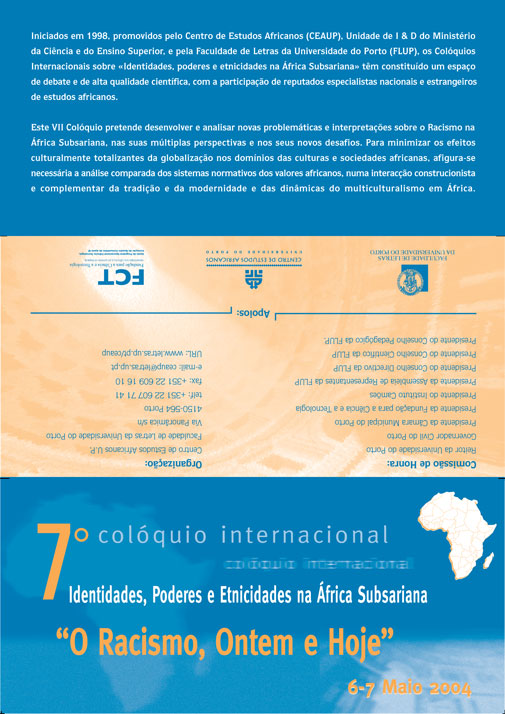Director: António Custódio Gonçalves Conselho Científico/Advisory Board: Alberto Amaral (Univ. do Porto), Brazão Mazula (Reitor da U.E.M. - Maputo) Christine Messiant (E.H.E.S.S.), Elikia M'Bokolo (E.H.E.S.S.- Paris), Franz-Wilhelm Heimer (CEA-ISCTE - Lisboa), Joana Pereira Leite (CESA-ISEG - Lisboa), Jill Reaney Dias (F.C.S.H. - U.N.L.), João Gomes Cravinho (Univ. Coimbra), Joaquim Alberto da Cruz e Silva (I.I.C.T. - Lisboa), José Novais Barbosa (Reitor da Univ. do Porto), Isabel de Castro Henriques (F.L.U.L.), Patrick Chabal (King's College - London), Michel Cahen (Univ. Bordéus III), Peter Meyns (Univ. Duisburg), Peter Vale (Univ. Western Cape), Saul Dubow (SOAS - Londres), Teresa Cruz e Silva (U.E.M. - Maputo), Victor Kajibanga (U.A.N. - Luanda). Conselho de Redacção/Editorial Board: António Custódio Gonçalves, Carlos José Gomes Pimenta, Ivo Carneiro de Sousa, Elvira Mea, José Manuel Pereira Azevedo, João Francisco Marques, Mário Vilela, Maria Cristina Pacheco, José Maciel Honrado Santos. Secretariado: Maria Cláudia Henriques Vasconcelos, Raquel Maria Machado da Cunha Propriedade: Centro de Estudos Africanos da Universidade do Porto Edição: Fundação Eng. António de Almeida Capa e composição: Inês Figueiredo Impressão e acabamento: SerSilito-Empresa Gráfica, Lda./Maia ISSN: 0874-2375 Depósito legal: 138153/99 Revista semestral: n° 1 - Janeiro 1999 Tiragem: 1000 exemplares ©1999 - CEAUP e Fundação Eng. António de Almeida Proibida a reprodução total do conteúdo desta publicação sem autorização prévia por escrito do CEAUP e da Fundação Eng. António de Almeida. Proibida a reprodução parcial sem a expressa referência da fonte.